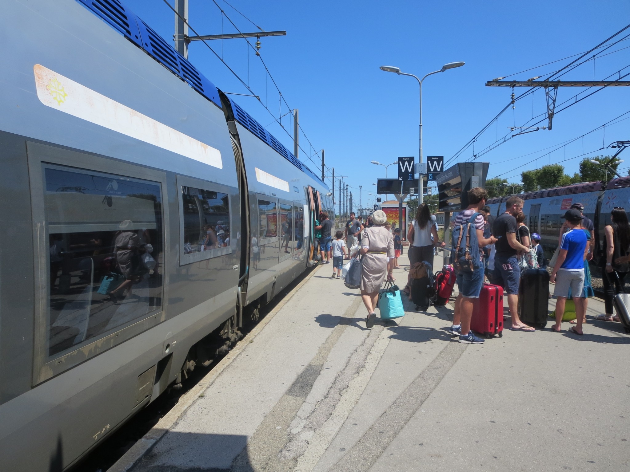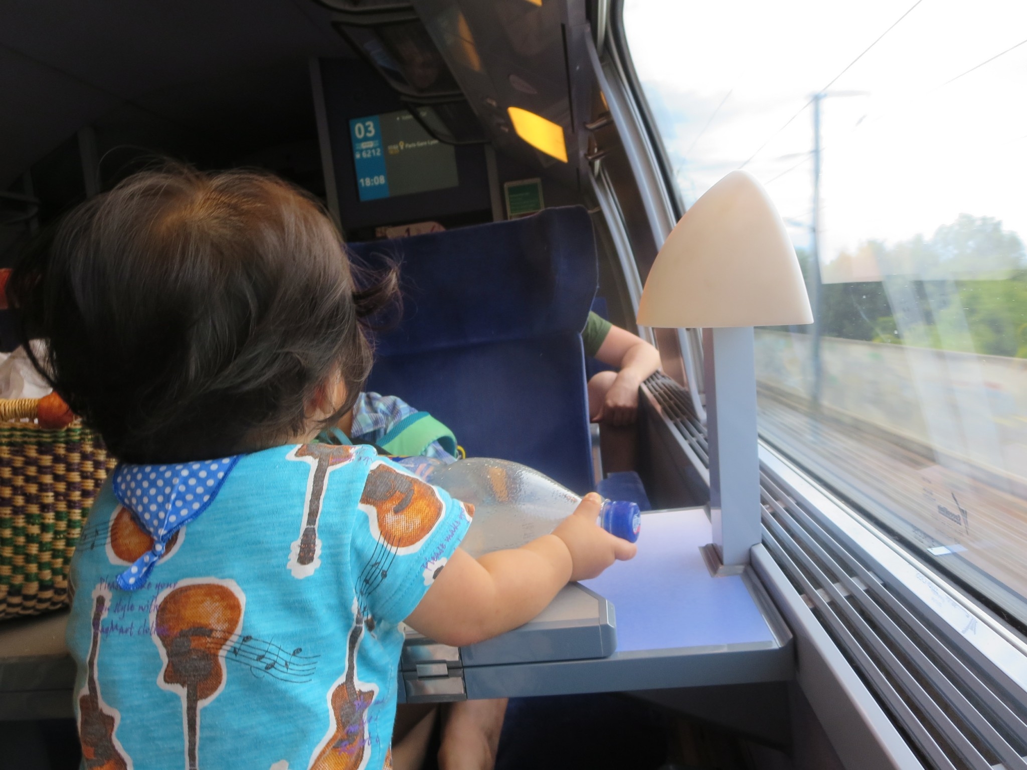 フランス語のみのアナウンスだったので原因はよくわかりませんが、到着まであと30分というあたりで停車し、しばらく動かない事態発生。結果30分ほど到着が遅れました。社内の電光掲示板に、到着予想時刻は表示されたので、フランス語がわからなくてもそれほど不安はありませんでしたが、常に子どもたちを飽きさせない工夫は必要ですね。