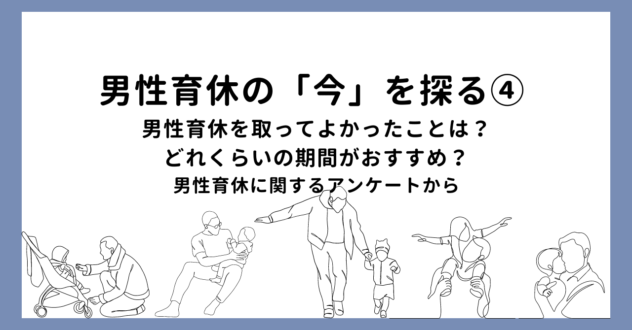 男性育休の「今」を探る④ 男性育休を取ってよかったことは?どれくらいの期間がおすすめ?男性育休に関するアンケートを実施しました|ワークシフト研究所 (note.com)