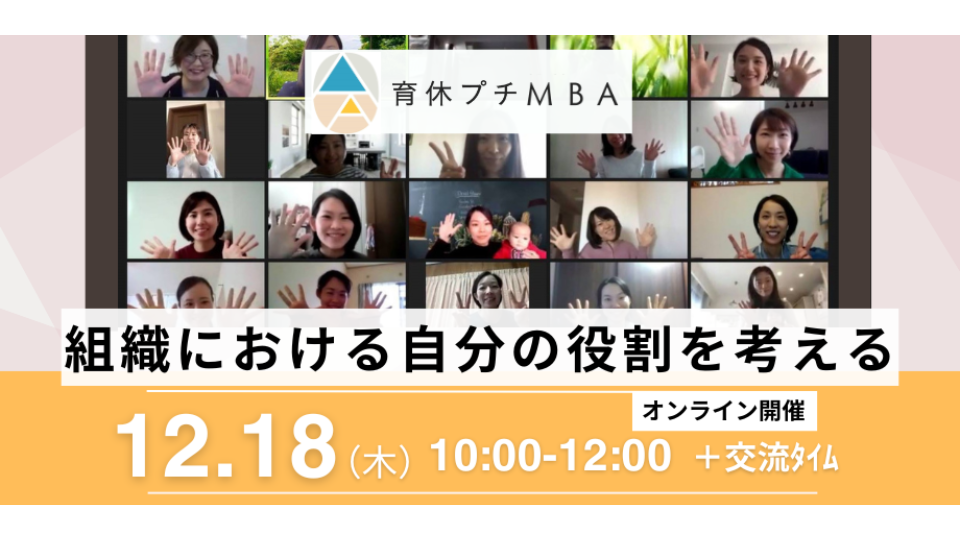 12/18(木) オンライン開催 育休プチMBA テーマ『組織における自分の役割を考える』