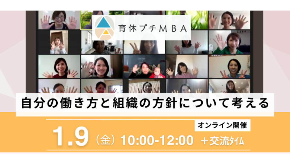 1/9(金) オンライン開催 育休プチMBA テーマ『自分の働き方と組織の方針について考える』